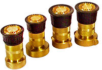 CHIFLONES 3 PASOS NACIONAL: Fabricados en bronce fundido regulan el chorro de agua en sus diferentes pasos: chorro directo, neblina y cortina, manejando también la operaciòn de cierre total al paso del agua, la cantidad de agua que opera es opcional y va desde 80,120 hasta (80 a 250 gpm.) protegidos con un protector de neopreno en la punta. Diámetro: 1.5" - 80/120 gpm. cuerda IPT/NSHT. 2.0" - 80/120 gpm. cuerda IPT/NSHT. 2.5" - 120/250 gpm. cuerda IPT/NSHT.