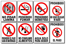 PROHIBITIVAS: Indican alto prohibición y previenen situaciones de riesgo. Cuentan con gráficos universales para su fácil entendimiento a empleados y visitantes.
